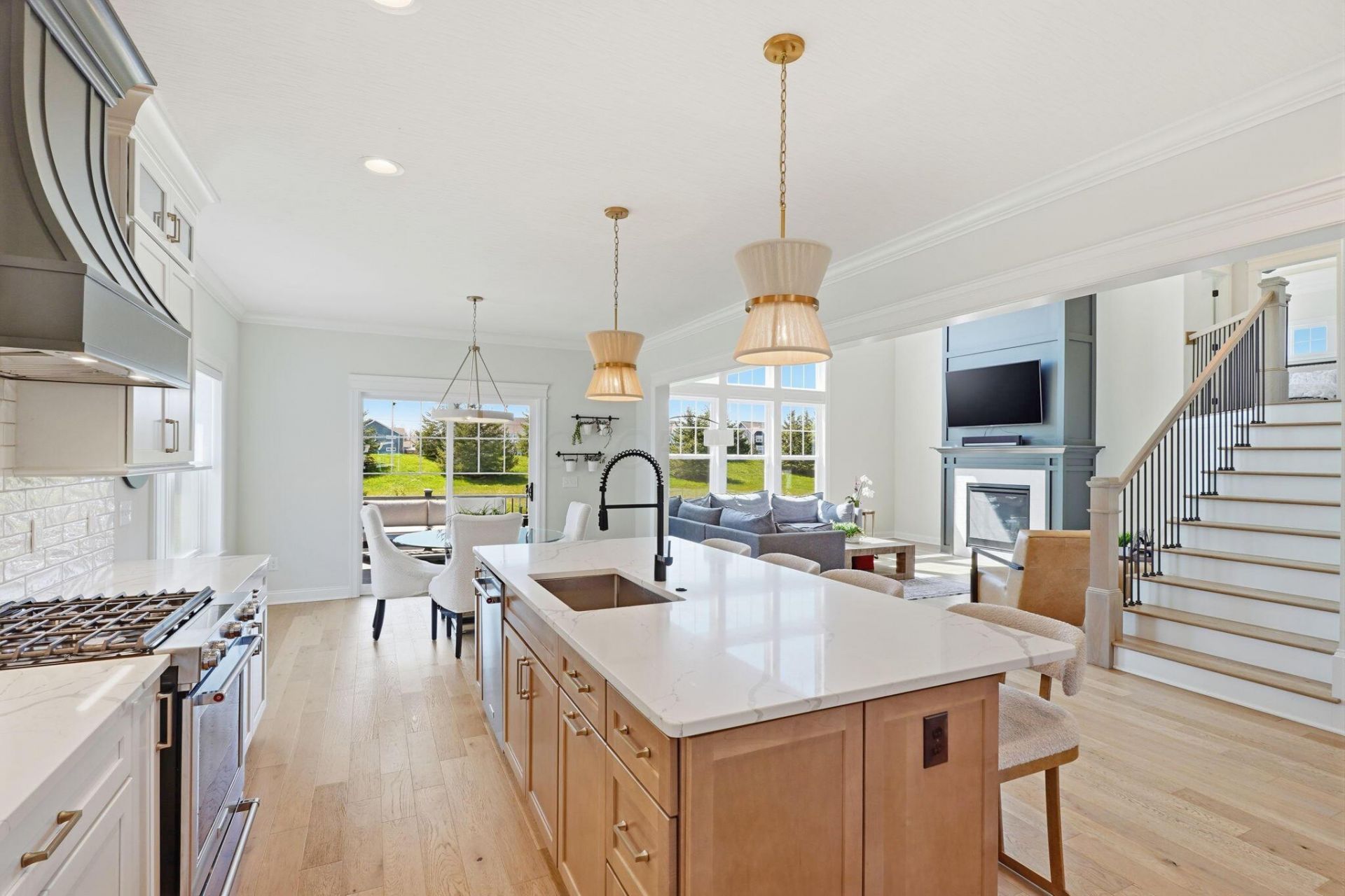 Stunning custom home with 5 bedrooms, 4-1/2 baths and over 5,000 sqft of luxury living space. Dramatic 2-story Great Room with stacked rear windows and custom fireplace, Chef's eat-in kitchen features quartz countertops, professional appliances, prep area with sink and a large pantry. Formal Dining Room, private Study, and Mudroom with built-ins leads to the 3-car garage. The separate Family room offers a bright fun setting to entertain or relax. Luxurious Owner's Suite with tray ceiling, sitting area, oversized shower, freestanding tub, and large closet. Convenient 2nd-level Laundry. The upper story offers two bedrooms that share a Jack and Jill style bath and a third bedroom with attached full bath. Finished lower level offers a large rec area, 5th bedroom, full bath and a storage room Covered rear porch overlooks private backyard and patio. Professionally landscaped with in-ground irrigation. Exceptional design, space, and comfort throughout. Jerome Village offers a community center, fitness facility, two pools and a network of trails.