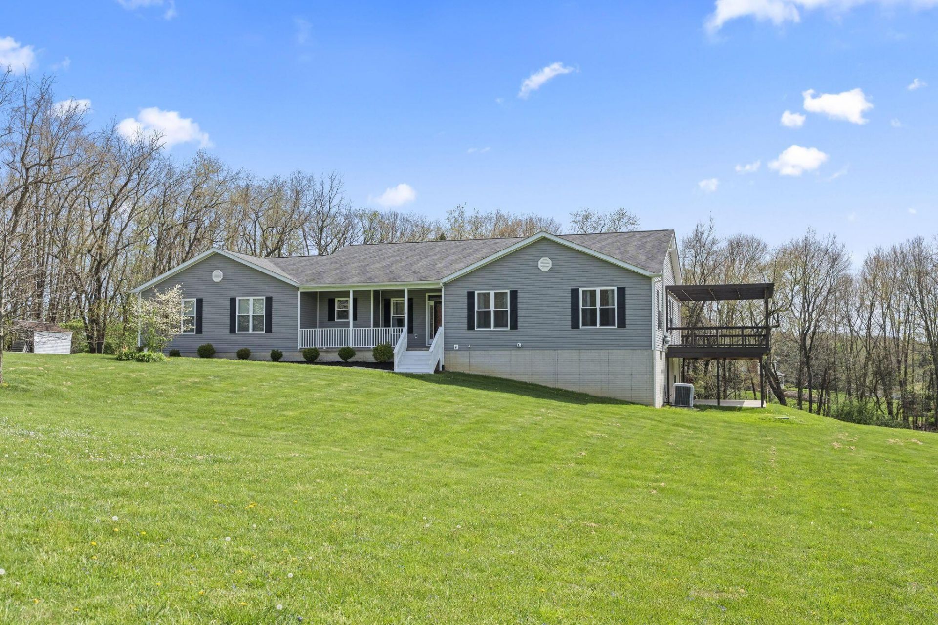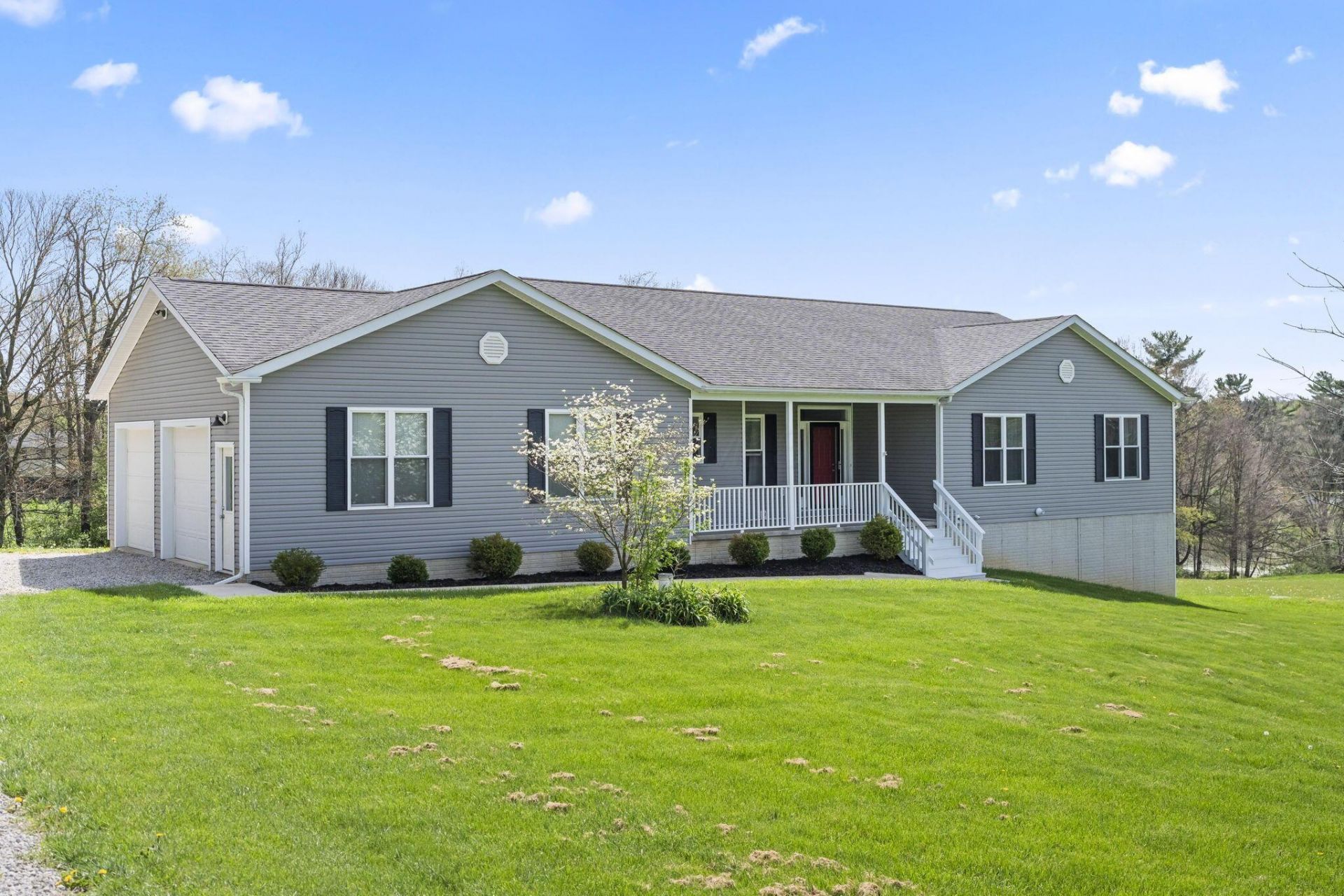 Beautifully appointed ranch home offering serene, panoramic countryside views in a peaceful, private setting. Situated on 3.63 acres along a quiet dead-end road, this property provides both tranquility and a welcoming neighborhood ideal for walking or biking.The home features three generously sized bedrooms and two and a half baths, with plumbing already in place for a third full bathroom in the lower level, offering excellent potential for future expansion. An open-concept floor plan is enhanced by cathedral ceilings and abundant natural light, creating an airy and inviting living space.Enjoy outdoor living at its finest with a spacious wraparound deck and charming front porch, perfect for relaxing or entertaining family and friends. A substantial 28' x 28' attached garage adds convenience and functionality.Ideally located just a short drive from the historic and charming downtown Mount Vernon, this property offers the perfect blend of peaceful country living with easy access to local amenities.