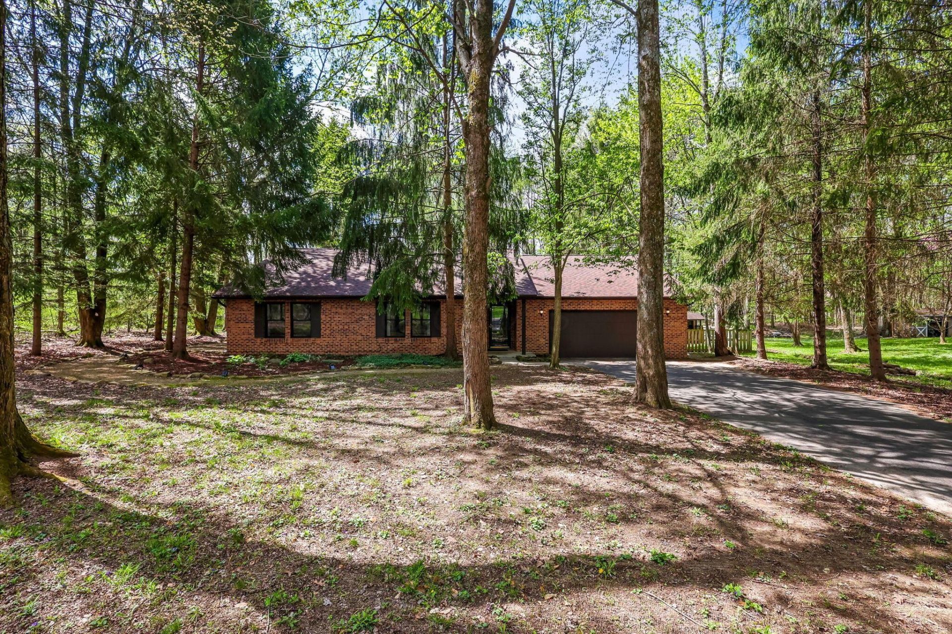 Welcome to this charming 3 bedroom, 2 bath ranch nestled on nearly a full acre in the desirable Beechwood Trails community! Set on a peaceful, wooded lot, this home offers the perfect blend of privacy, style, and comfort.Step inside to find a functional, single-level layout ideal for everyday living. The kitchen is equipped with stainless steel appliances and a spacious pantry. Recent updates include a new roof (2026) with a 15 year transferable warranty, fresh paint (2025 & 2026) and new ceramic tile floor in the main bathroom (2026) . Enjoy nights around the three-sided fireplace or step outside onto the deck and take in the serene surroundings and entertain guests around the stacked-stone fire pit on a cool evening. Each bedroom offers generous closet space and the main bedroom features an oversized closet and ensuite. The attic above the attached 2 car garage and shed provide additional storage. Don't miss your opportunity to own this inviting home in a quiet established neighborhood! Agent Owned.