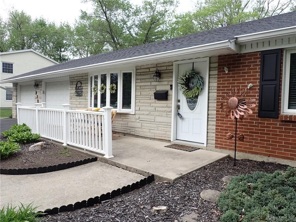 Wow! Spacious one-floor living w/24x20 additional Great Room in rear featuring WBFP & walkout to 20x20 patio in large level fenced yard w/mature trees. This home features an updated Kitchen w/granite counters, stainless steel appliances, a separate family room/sitting room off Dining Rm w/a private pocket office. New carpeting in all 3 Bedrooms & Fam Rm in 2025. Just minutes from The Green, Indian Ripple Park & easy drive to Wright Patterson Air Force Base. Additional attic insulation in 2024; Roof <10 years.