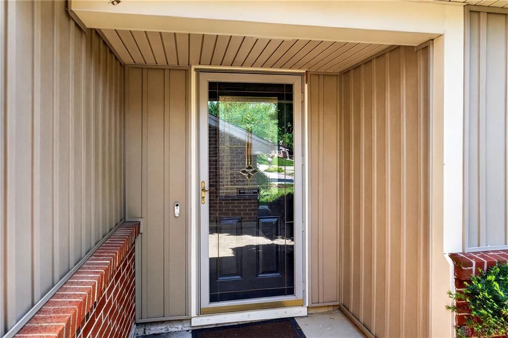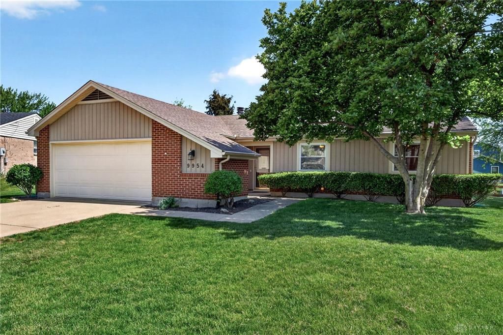 Discover comfort and style in this charming Miamisburg residence. This single-story home, with 3 bedrooms and 2 bathrooms across 1746 square feet, offers an exceptional lifestyle on a 0.34-acre lot. A classic brick and wood siding exterior welcomes you, complemented by mature landscaping, a driveway, and an attached garage. Step inside to an inviting entry with warm wood flooring and a decorative glass door. The spacious kitchen, equipped with a dishwasher, garbage disposal, microwave, range, and refrigerator, seamlessly combines modern design with functional living. Sleek countertops, stylish cabinetry, a kitchen island, and a pantry enhance this bright space, flowing effortlessly into a charming dining area. The living room provides an inviting atmosphere with a cozy fireplace and vaulted ceilings. The primary bedroom is a tranquil retreat with abundant natural light and direct access to a private bathroom suite featuring a modern vanity and a spacious glass-enclosed shower. Additional bedrooms offer comfortable living, some with walk-in closets and ceiling fans. The functional laundry room includes built-in cabinetry. Outside, a private patio awaits, perfect for outdoor relaxation and entertaining, surrounded by a spacious, fenced backyard with lush green lawns and mature trees. This home is ideally situated for both privacy and convenience in a desirable neighborhood.